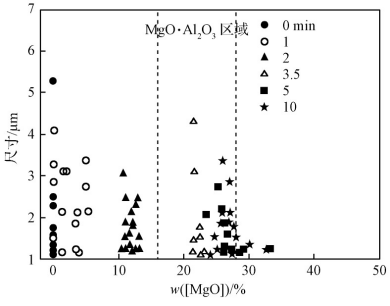 摘 要:爐外精煉是煉鋼流程中控制鋼中非金屬夾雜物的重要轉(zhuǎn)折點(diǎn),作為整個精煉過程中與鋼液實(shí)時接觸的鋼包內(nèi)襯用耐火材料,因?yàn)楦邷匚锢砘瘜W(xué)反應(yīng)易向鋼中引入夾雜物,導(dǎo)致精煉效果達(dá)不到預(yù)期。通過對典型現(xiàn)役鋼包內(nèi)襯用耐火材料與不同脫氧鋼之間的界面反應(yīng)歸納發(fā)現(xiàn),鋼包內(nèi)襯用耐火材料會對鋼中夾雜物的形貌、成分和理化性能產(chǎn)生影響,既可向鋼中引入夾雜物,也能夠吸附去除夾雜物。提出未來鋼包內(nèi)襯用耐火材料應(yīng)被賦予更多凈化鋼液等功能指標(biāo)的發(fā)展方向。鋼鐵行業(yè)是體現(xiàn)一個國家整體工業(yè)發(fā)展水平的重要標(biāo)志,對保障國家重大工程建設(shè)、提升裝備制造水平、促進(jìn)節(jié)能減排和相關(guān)應(yīng)用領(lǐng)域技術(shù)升級具有重要意義。近年來,國內(nèi)鋼鐵企業(yè)加大研發(fā)投入和技術(shù)改造力度,盡管實(shí)現(xiàn)了鋼鐵產(chǎn)量的快速增長和品種的迅速豐富,但是一些高端特殊鋼如高鐵用軸承鋼和航空飛機(jī)起落架用鋼仍未擺脫依賴進(jìn)口的局面。為助力解決上述問題,2019年工信部將高檔軸承鋼等40種高品質(zhì)鋼納入《重點(diǎn)新材料首批次應(yīng)用示范指導(dǎo)目錄》中,對相關(guān)材料發(fā)展和應(yīng)用進(jìn)行傾斜支持。這些材料性能突破的關(guān)鍵在于精確控制非金屬夾雜物。當(dāng)夾雜物以不利的尺寸、形態(tài)和分布特征存在時,會破壞基體的連續(xù)性和完整性,嚴(yán)重影響鋼材質(zhì)量和使用性能[1,2,3,4,5]。關(guān)于夾雜物的去除問題,眾多科研人員圍繞如何提高夾雜物去除率開展了大量研究工作,開發(fā)出超低氧冶煉和夾雜物塑性化等先進(jìn)冶煉技術(shù)和裝備[6,7,8,9,10,11,12,13,14,15,16,17]。研究發(fā)現(xiàn)[18],這些技術(shù)和裝備的革新可以有效減少夾雜物的數(shù)量和降低夾雜物的危害,但仍無法實(shí)現(xiàn)對所有夾雜物尺寸和分布的精確控制。這說明,對于流程長、環(huán)節(jié)多的高端鋼來講,夾雜物的精準(zhǔn)控制需要多方面的協(xié)同貢獻(xiàn)。進(jìn)一步對夾雜物來源的跟蹤研究發(fā)現(xiàn),在整個冶煉中與鋼液實(shí)時接觸的耐火材料是影響鋼中夾雜物尺寸和分布的主要因素之一。隨著爐外精煉和合金化工藝在煉鋼過程中所占比重越來越高,鋼包工作襯用耐火材料的重要性愈發(fā)凸顯,其對鋼中夾雜物的影響同樣不可忽視。中國鋼包內(nèi)襯用耐火材料隨著爐外精煉技術(shù)的發(fā)展不斷改進(jìn)[19]。為了滿足不同時期內(nèi)的精煉需求,近幾十年來冶金和材料科研技術(shù)工作者不斷更新設(shè)計理念并相繼開發(fā)出多種鋼包內(nèi)襯用耐火材料體系[20,21,22,23],包括高鋁系耐火材料、碳系復(fù)合耐火材料、鎂鋁系無碳耐火材料和CaO系耐火材料等。這些鋼包內(nèi)襯用耐火材料在爐外精煉的發(fā)展史上均扮演過重要的角色[24,25,26],其中基于天然鋁礬土合成的高鋁系耐火材料由于較低的使用壽命和較差的高溫服役性能,例如抗熱震性差、掛渣嚴(yán)重和抗渣侵能力弱等逐漸退出精煉鋼包內(nèi)襯的歷史舞臺[27,28,29];其余耐火材料目前雖被使用,但受其材料組成成分和自身結(jié)構(gòu)影響仍均存在一些問題,如碳系復(fù)合耐火材料向鋼中的增碳行為[30]、鎂鋁系無碳耐火材料的抗熱震性問題、CaO系耐火材料的水化問題等[31,32],這些問題會導(dǎo)致精煉工藝達(dá)不到預(yù)期效果。此外,現(xiàn)役耐火材料在精煉過程中與鋼液之間的界面反應(yīng)也會對鋼中的非金屬夾雜物造成影響。關(guān)于鋼包內(nèi)襯用耐火材料對鋼中非金屬夾雜物和鋼材性能的影響已有較多報道,結(jié)果表明:不同材質(zhì)的耐火材料與鋼液的界面反應(yīng)機(jī)制不同,對鋼中夾雜物形成的影響也有較大差異。因此,有必要對現(xiàn)役主流鋼包內(nèi)襯用耐火材料對鋼中非金屬夾雜物的影響進(jìn)行回顧總結(jié),并探討未來鋼包內(nèi)襯用耐火材料的發(fā)展方向。1 典型現(xiàn)役鋼包內(nèi)襯用耐火材料對非金屬夾雜物的影響在實(shí)際精煉過程中,鋼包內(nèi)襯用耐火材料以較大面積與鋼液實(shí)時接觸。伴隨著高溫和攪拌等外場作用,鋼液會滲透耐火材料并發(fā)生界面反應(yīng),逐漸導(dǎo)致耐火材料的蝕損,影響鋼液成分。基于精煉鋼包內(nèi)襯用耐火材料材質(zhì)的差別和精煉工藝的不同,鋼包內(nèi)襯用耐火材料的蝕損程度和對鋼中夾雜物的影響存在差異。因此,了解鋼包內(nèi)襯用耐火材料對鋼中夾雜物的影響,不僅對冶金工業(yè)中夾雜物的控制具有重要意義,還將對未來鋼包內(nèi)襯用耐火材料的發(fā)展提供指導(dǎo)。以現(xiàn)役主流的MgO系耐火材料和鎂鋁質(zhì)耐火材料為對象,回顧和總結(jié)其在精煉過程中作為鋼包內(nèi)襯對鋁脫氧鋼和硅錳脫氧鋼中夾雜物的影響規(guī)律。1.1 MgO系耐火材料對鋼中非金屬夾雜物的影響1.1.1 對鋁脫氧鋼中夾雜物的影響金屬鋁具有價格便宜,親氧能力強(qiáng),脫氧速度快等優(yōu)點(diǎn),是一種十分受歡迎的脫氧劑。在使用鋁脫氧時鋼中的總氧含量可以控制在極低水平,所以對鋼中總氧含量要求較高的鋼種一般采用鋁作為脫氧劑,其中典型的代表鋼種有軸